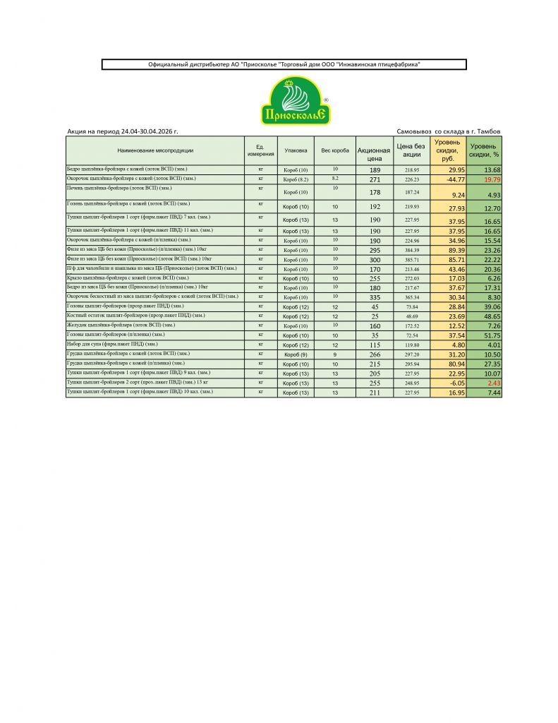 Уважаемые партнеры и потенциальные покупатели, представляем вашему вниманию новую акцию на период с 24.04-30.04.2026 г.